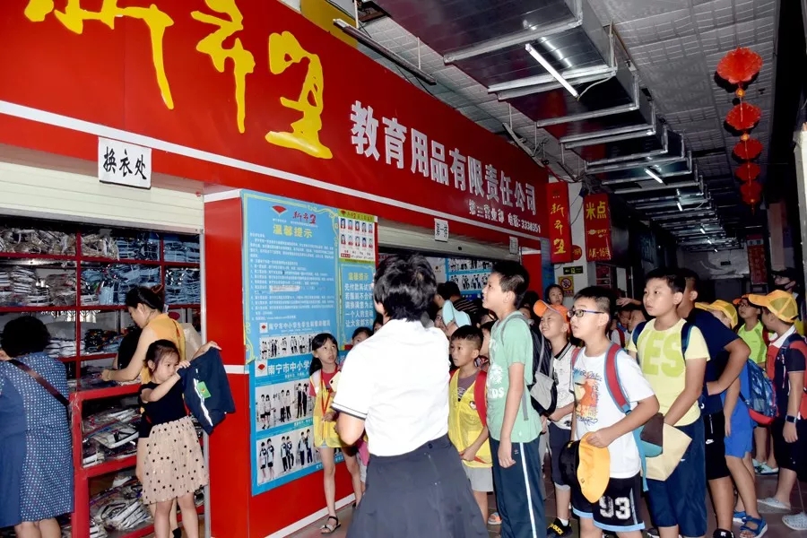 小記者們參觀了南寧市中小學學生裝北湖路的實體專賣店,通過現(xiàn)場認識“新希望”店面形象、了解學生裝購買形式、學生裝款式等知識。