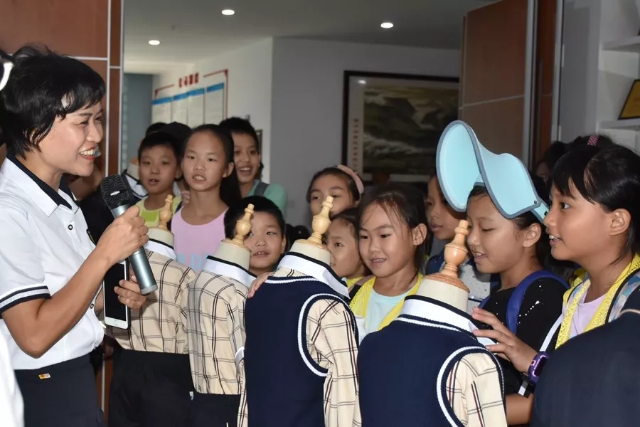 (帶隊老師為小記者們講解服裝小故事)