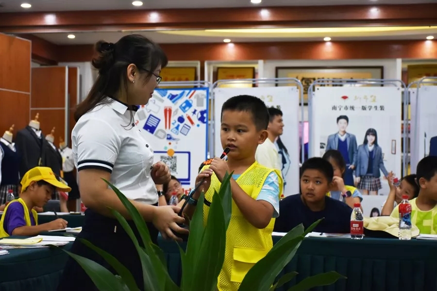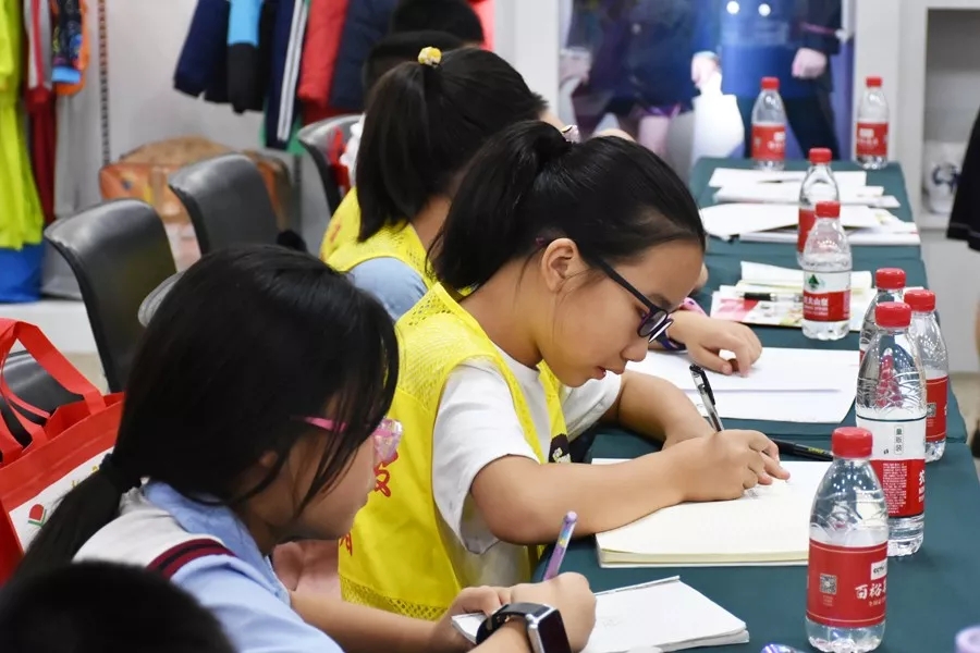 百裕集團營銷中心市場總監(jiān)曾凱蘭在活動中與小記者們交流互動,通過提問等形式,使同學們更深刻認識學生裝。小記者們踴躍參與,并將學到的知識點認真做好筆記。