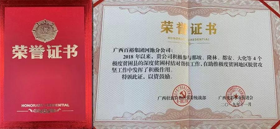 百裕集團(tuán)河池分公司作為環(huán)江馴樂鄉(xiāng)鎮(zhèn)北村結(jié)對(duì)幫扶企業(yè),在扶貧攻堅(jiān)工作中突出貢獻(xiàn)受到表?yè)P(yáng)。