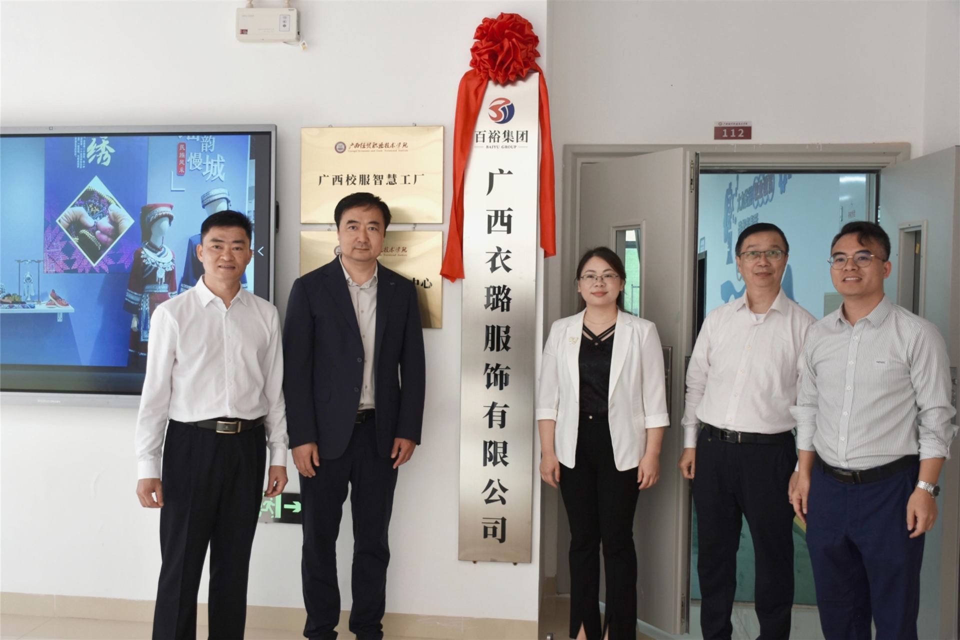 中國紡織服裝教育學(xué)會會長紀(jì)曉峰、廣西經(jīng)貿(mào)職業(yè)技術(shù)學(xué)院校長羅生芳、副校長林震、藝術(shù)設(shè)計(jì)與建筑學(xué)院副院長蔣衛(wèi)軍與百裕集團(tuán)市場總監(jiān)曾凱蘭共同為產(chǎn)業(yè)學(xué)院揭牌,現(xiàn)場掌聲雷動,標(biāo)志著雙方在產(chǎn)教融合領(lǐng)域邁出了具有里程碑意義的一步。