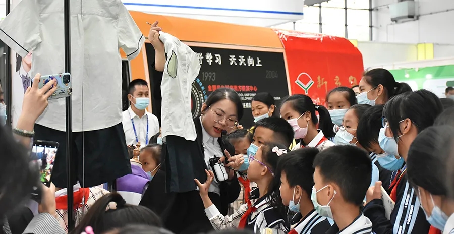 “百裕校園時代”以“科技創(chuàng)新、著裝育人、呵護明天、文化傳承”為品牌理念,切合當代學(xué)生對校園服飾文化的需求,現(xiàn)場深受學(xué)生們的關(guān)注,現(xiàn)場人頭攢動,圍成了一個小型講堂。
