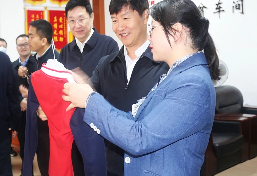 在參觀展示廳的過程中,市場總監(jiān)曾凱蘭向領導們詳細介紹了百裕校園服飾特點。環(huán)江是毛南、壯、漢、苗、瑤、水、仫佬族、侗、布依等少數(shù)民族集中地,是全國惟一的毛南族自治縣,擁有絢爛多彩的少數(shù)民族文化背景,百裕集團在服務當?shù)貙W校學子的同時,充分保留民族文化特色,將文化元素融入到學生服飾當中,傳承民族文化。對于此舉,劉小明給予了認可與極大的鼓勵。