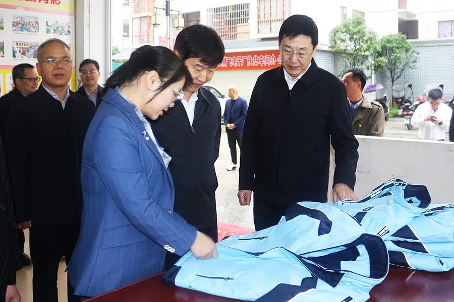 在百裕集團環(huán)江車間,劉小明詳細了解我公司在安置區(qū)設立的車間管理及產業(yè)發(fā)展情況,了解公司發(fā)展現(xiàn)狀、當前存在問題和下一步發(fā)展規(guī)劃等,并關心車間員工的生產和收入問題。