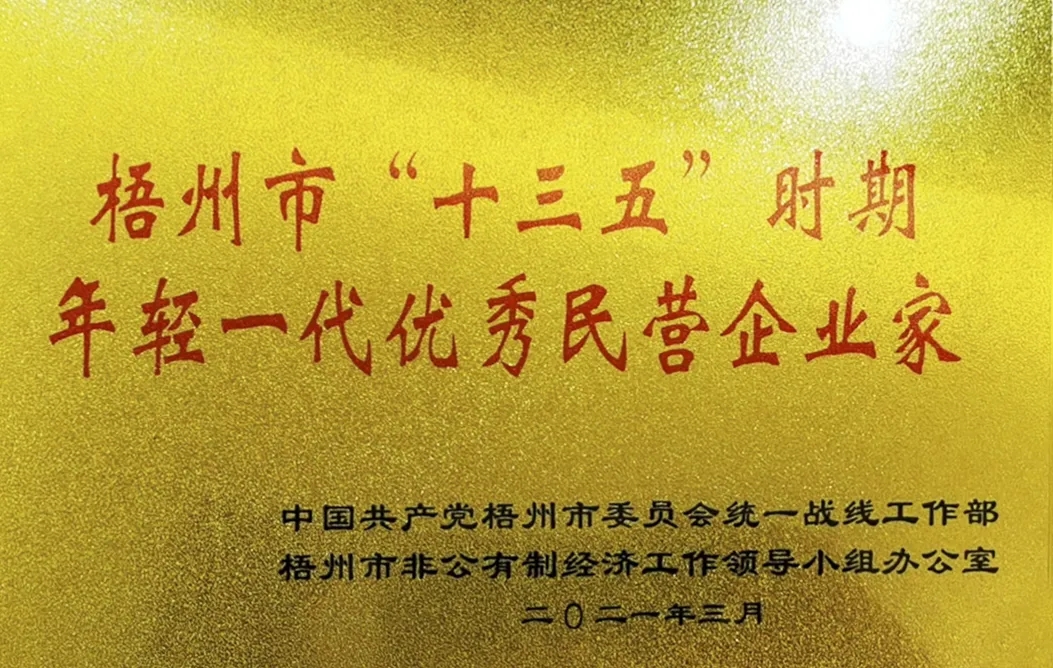 百裕集團(tuán)董事長(zhǎng)許曲煌榮獲“梧州市‘十三五’時(shí)期年輕一代優(yōu)秀民營(yíng)企業(yè)家”稱(chēng)號(hào)。