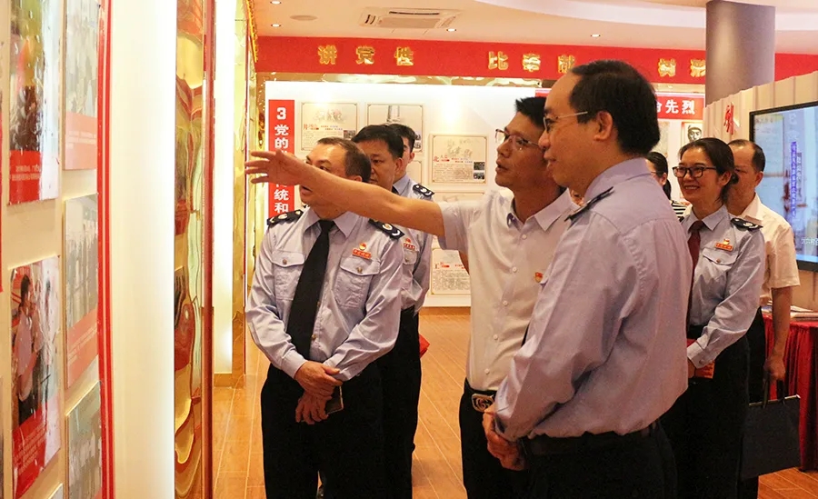 由稅務(wù)局黨組書(shū)記、局長(zhǎng)陳懿帶隊(duì)的交流團(tuán)在百裕黨支部書(shū)記曾晏來(lái)的帶領(lǐng)下,參觀黨建中心、黨群活動(dòng)室,了解我公司黨建工作。