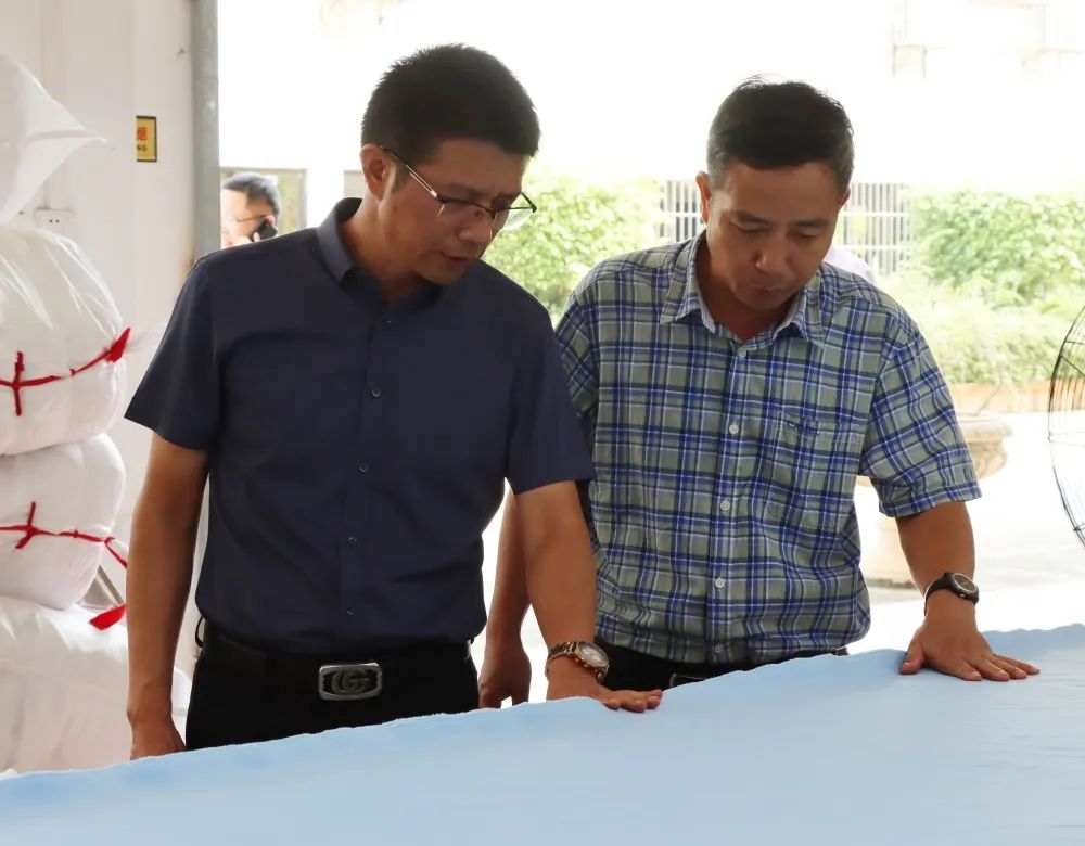 調(diào)研組通過深入生產(chǎn)車間、校服文化館實(shí)地了解企業(yè)生產(chǎn)經(jīng)營服裝的面料、工藝、成品檢驗(yàn)等環(huán)節(jié)。