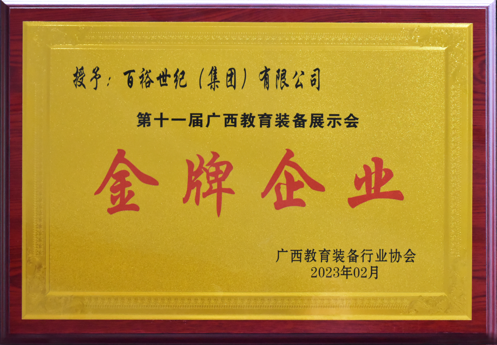 會上還表彰了一批第十一屆廣西教育裝備展示會優(yōu)秀企業(yè)和團(tuán)隊。百裕世紀(jì)(集團(tuán))有限公司榮獲“金牌企業(yè)”稱號!