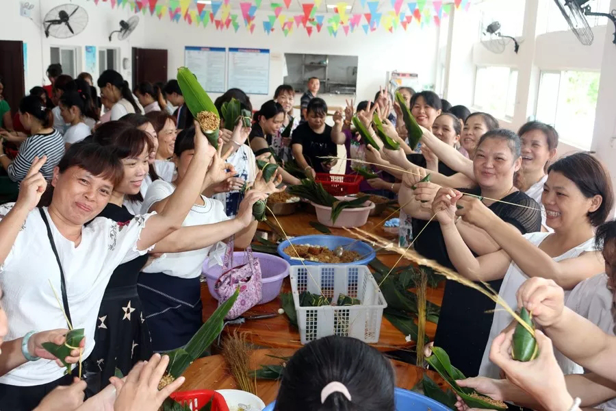 員工們歡聚一堂,包粽子,話家常,感受別樣的端午風(fēng)味。經(jīng)過大家的辛勤勞作,幾百個形態(tài)各異的粽子出爐了。空氣中散發(fā)著清爽甘醇的氣息,香噴噴的粽子味道飄滿整個食堂,大家迫不及待品嘗起來。