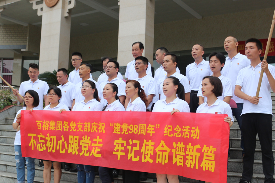 今年是中國共產(chǎn)黨成立98周年,為隆重紀(jì)念黨的生日,進(jìn)一步引導(dǎo)集團(tuán)全體黨員干部重溫黨的光輝歷史,繼承和弘揚(yáng)黨的優(yōu)良傳統(tǒng),激勵(lì)廣大黨員干部進(jìn)一步堅(jiān)定信心、振奮精神、砥礪奮進(jìn),努力開創(chuàng)集團(tuán)黨建工作新局面。在七 · 一建黨節(jié)來臨之際,百裕集團(tuán)積極組織各黨支部,開展“慶祝建黨98周年”以“不忘初心跟黨走,牢記使命譜新篇”為主題的活動(dòng)。