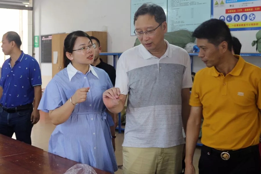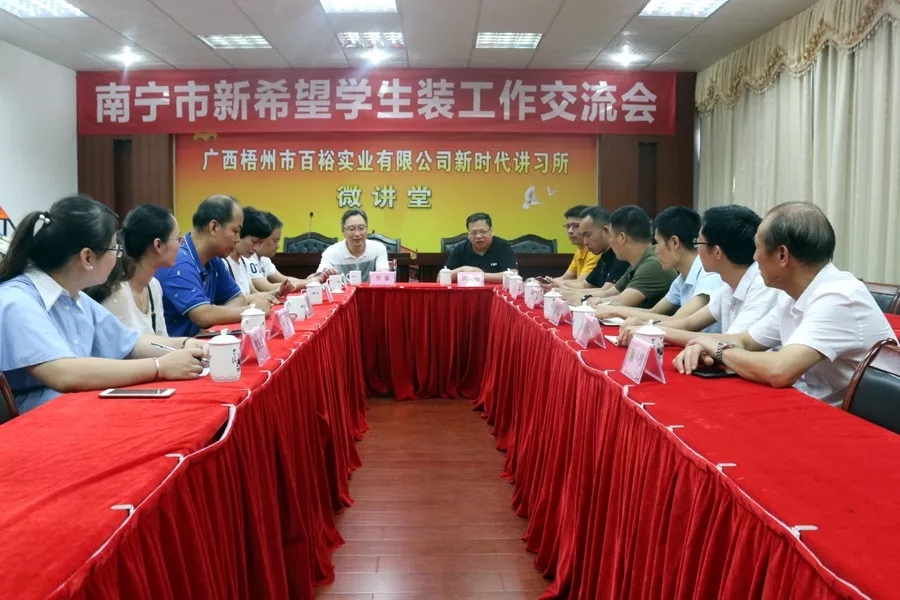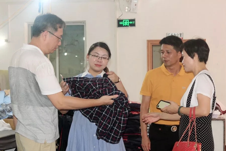 7月4日,南寧市新希望教育用品有限責(zé)任公司總經(jīng)理勞豪一行4人到百裕實(shí)業(yè)生產(chǎn)基地,了解學(xué)生裝庫存情況以及監(jiān)督產(chǎn)品質(zhì)量。百裕集團(tuán)董事長許曲煌、生產(chǎn)中心總經(jīng)理曾晏來等相關(guān)公司人員陪同考察。