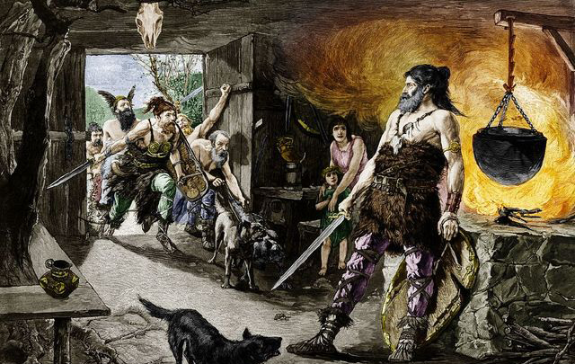 公元前6世紀(jì)左右,插畫(huà),日耳曼人。關(guān)于領(lǐng)帶的起源一種傳說(shuō)認(rèn)為,領(lǐng)帶最早起源于日耳曼,日耳曼人居住在深山老林里,茹毛飲血,披著獸皮取暖御寒,為了不讓獸皮掉下來(lái),他們用草繩扎在脖子上,綁住獸皮.這樣一來(lái),風(fēng)也不能從頸間吹進(jìn)去,既保暖以防風(fēng),后來(lái)他們脖子上的草繩被西方人發(fā)現(xiàn),逐步完善成了領(lǐng)帶。