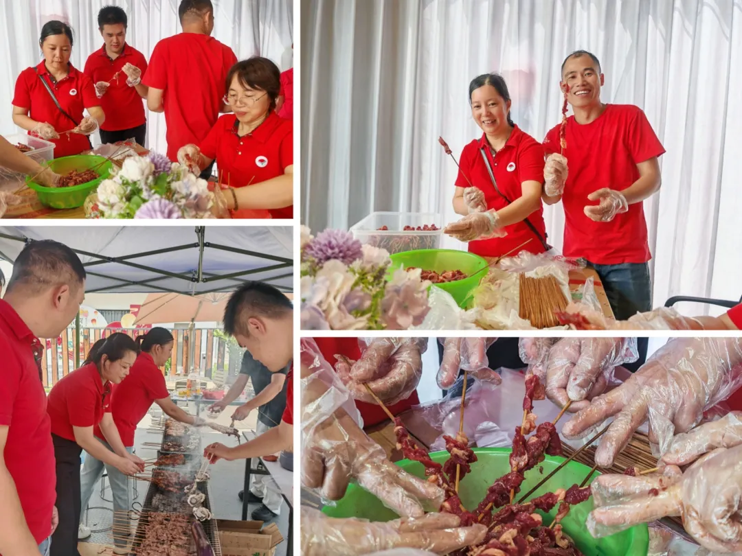 夕陽的余暉灑滿草地,炭火漸漸燃起,一場(chǎng)美味的燒烤派對(duì)正式拉開序幕,香氣彌漫在整個(gè)活動(dòng)現(xiàn)場(chǎng)。