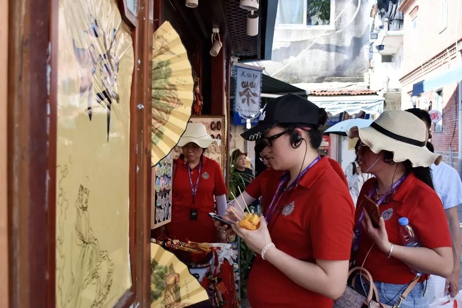 在導(dǎo)游的引導(dǎo)下,小團隊穿梭在鼓浪嶼大大小小的巷子中,品味美食,欣賞風(fēng)景,感受文化