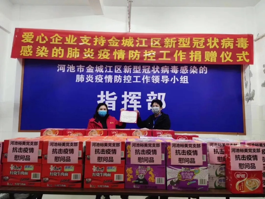 2月13日,百裕集團河池分公司為河池市金城江區(qū)新型冠狀病毒感染的肺炎疫情防控工作小組指揮部,送去抗擊疫情慰問品。