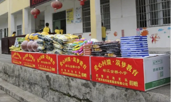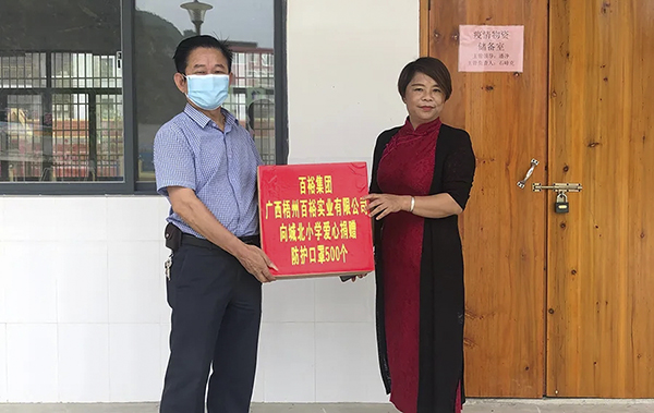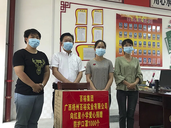 此外,在疫情防控的節(jié)點,百裕集團同時向河池都安紅星小學(xué)與城北小學(xué)分別捐贈防護口罩各1000個和500個,助力學(xué)校守好疫情防控最后一道防線,